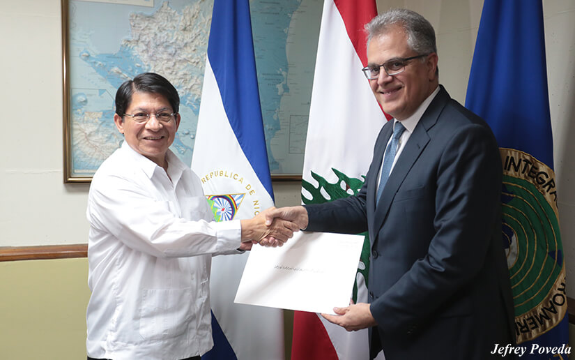 El jefe de la diplomacia nicaragüense primeramente sostuvo una conversación amena con el embajador libanés que será un representante concurrente con sede en México.
