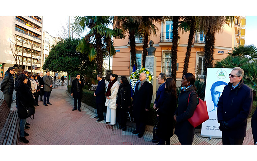 El Gobierno de Reconciliación y Unidad Nacional, por medio de su Embajada en España, conmemoró, el día de hoy, en Madrid, el 103 aniversario de la partida física de Rubén Darío, con una ofrenda floral ante el busto ubicado en la Glorieta que lleva su nombre.