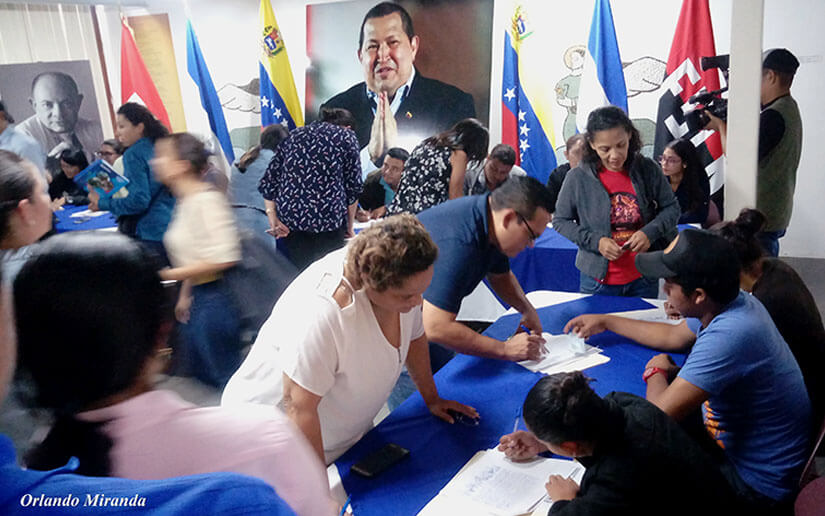 Otro nicaragüense que dio su firma es don Juan Ramón Cardoza, quien expresó que es una lucha justa porque el imperialismo norteamericano donde llega solo deja tragedia, dolor, muerte, “y lo que tenemos que hacer nosotros es solidarizarnos los pueblos de América Latina para que no nos suceda lo que le pasó a Irak, Siria, Libia, Afganistán”, pronunció.