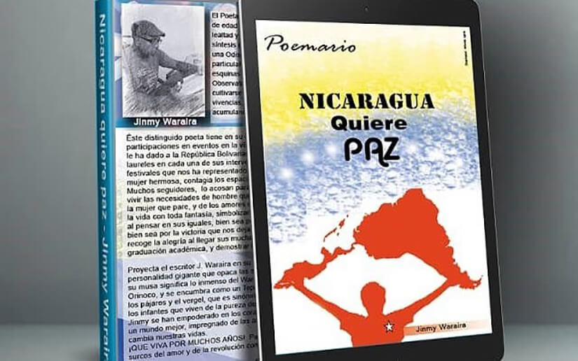 La casa “José Martí” fue el escenario hoy de la presentación del libro “Nicaragua Quiere Paz” del poeta popular venezolano Jinmy Waraira como parte de la Jornada “Honrando a Darío y Sandino” que desarrolla la Embajada de Nicaragua en la República Bolivariana de Venezuela.