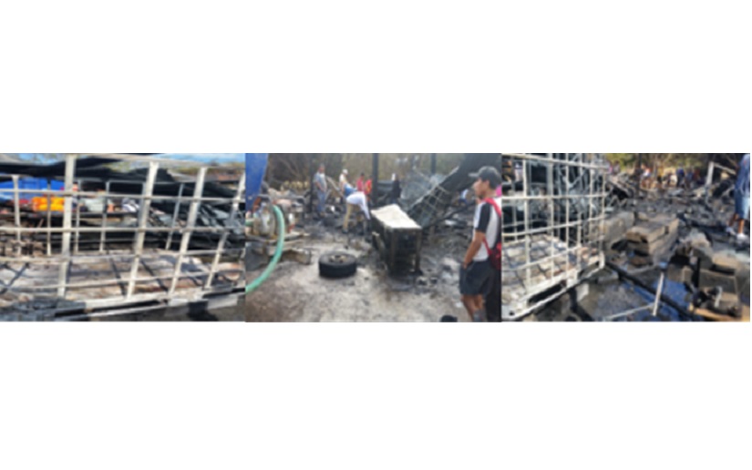 El siniestro dejó como resultado la combustión de 64 metros cuadrados del total de 3 mil 500 que mide el taller construido de madera, techo de zinc y de piso natural. 2 exhibidores, 2 abanicos de pedestal, 1 televisor,1 refrigerador y 1 compresor, lubricantes de motor fueron dañados por las llamas.