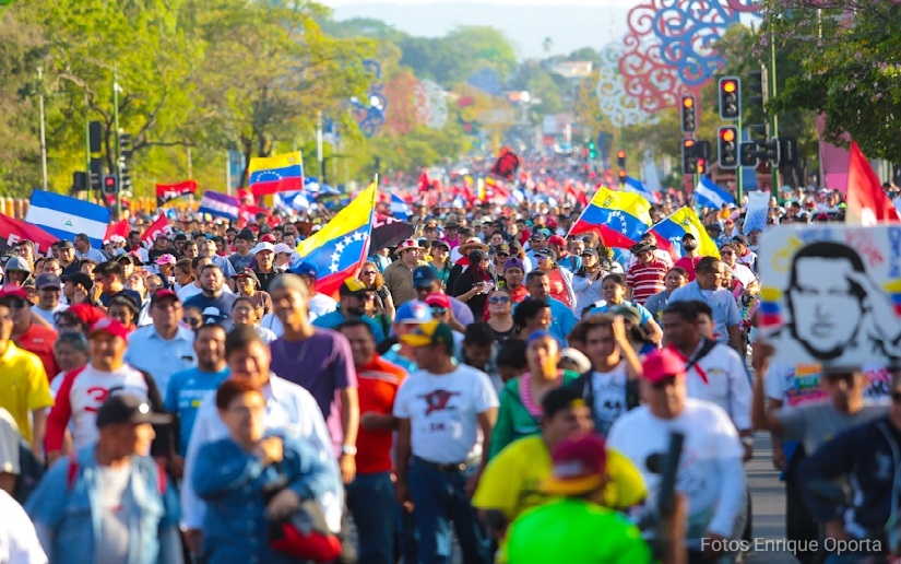 Una vez más la familia nicaragüense y sandinista se desbordó sobre la Avenida de Bolívar a Chávez recordando su legado y expresando siempre su cariño y respeto por el líder venezolano.