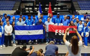 El orgullo de ser nicaragüense quedó patentizado en cada uno de los miembros de la Selección Nacional de Baloncesto, que recibieron las banderas de patria Nicaragua y FSLN.