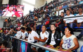 Los amantes del fútbol se dieron cita en el Polideportivo Alexis Argüello, en la capital para vivir la final de la Liga de Campeones entre el Real Madrid y el Liverpool.