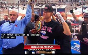Con un contundente nocaut a los 20 segundo del primer asalto, el nicaragüense Roberto "Dinamita" Arriaza conquistó el título Intercontinental de las 147 libras de la Organización Mundial de Boxeo, OMB.