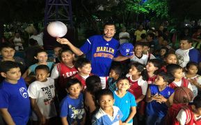 El basquetbolista boricua, Orlando “El Gato” Meléndez, quien forma parte del equipo de baloncesto, Harlem Globetrotter, compartió este domingo una amena tarde con la Academia Infantil de Baloncesto de la Alcaldía de Managua.