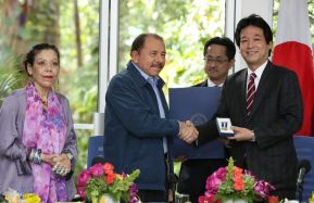 Presidente-Comandante Daniel y Compañera Rosario Vicepresidenta de Nicaragua se reúnen con el Señor Kentaro Sonoura, Ministro de Estado para Asuntos Exteriores del Japón. 5 de Mayo del 2017: