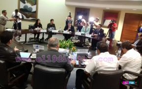 El presidente del Banco Central de Nicaragua, Ovidio Reyes; Wálmaro Gutiérrez, presidente de la Comisión Económica; y Bayardo Arce, asesor para Asuntos Económicos de la Presidencia, se reunieron con representantes del Fondo Monetario Internacional (FMI).