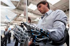 Obreros de Daewoo utilizan exoesqueletos robóticos para cargar objetos pesados