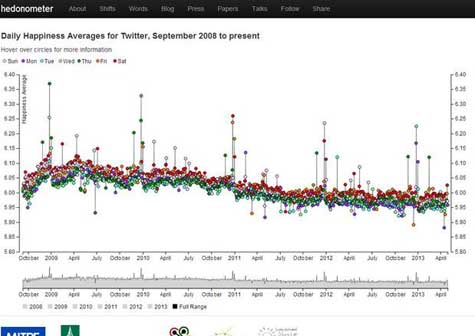 Un "hedonómetro" mide felicidad de usuarios de Twitter