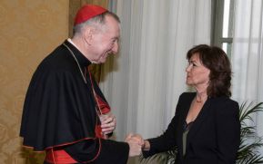 La vicepresidenta del Gobierno, Carmen Calvo, y el secretario de Estado del Vaticano, Pietro Parolin, han tratado el escándalo de los abusos sexuales en España durante el encuentro de dos horas que han mantenido este lunes