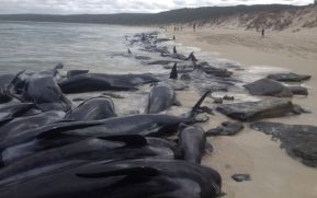 Más de 150 ballenas piloto se quedaron varadas este viernes en una bahía en el suroeste de Australia, lo que ha motivado la emisión de una alerta por tiburones.