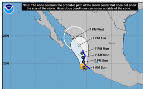 La recién formada tormenta tropical Pilar comenzó a golpear la costa de México en el Pacífico con lluvias fuertes y se espera que su vórtice pase relativamente cerca el lunes del balneario de Puerto Vallarta.
