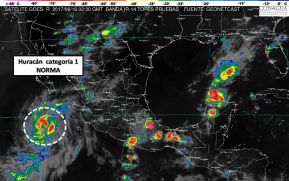 Norma se ubica a 400 kilómetros al sur de Cabo San Lucas, con vientos sostenidos de 120 y rachas de 150 kilómetros por hora con oleaje de tres a cuatro metros de altura.