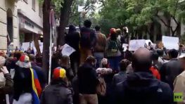 Grupos de extrema derecha expañola y venezolana se han manifestado en Madrid contra el Gobierno de Venezuela, presidido por Nicolás Maduro, tras la convocatoria a un evento de la Embajada venezolana.