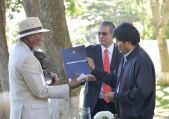 El presidente de Bolivia, Evo Morales, entregó este sábado al reconocido actor y director de cine estadounidense Morgan Freeman un ejemplar del 'Libro del Mar', en una reunión en la ciudad de Santa Cruz de la Sierra.