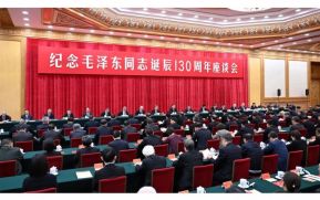 El Comité Central del Partido Comunista de China (PCCh) celebró hoy martes un simposio en el Gran Palacio del Pueblo para conmemorar el 130º aniversario del nacimiento del camarada Mao Zedong.