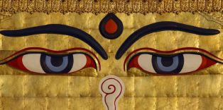 Los tres ojos de Buda que coronan la gran estupa Boudhanath, el monumento budista más emblemático del valle de Katmandú construido para albergar las reliquias de una santidad, vuelven a ver después de que el terremoto de 2015 los cegara.