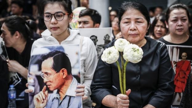 Los tailandeses salieron hoy a la calle para despedirse de su rey, Bhumibol Adulyadej, quien falleció el jueves a los 88 años y cuyo cuerpo fue trasladado al Gran Palacio de Bangkok, tras 70 años en el trono, en el reinado más largo.