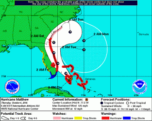 Huracán Matthew pierde intensidad en su ruta a Bahamas