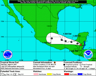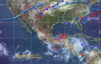 La tormenta tropical Earl avanza hoy debilitada por la costa del sur de la bahía de Campeche (México), con vientos máximos sostenidos de 40 millas por hora, y se espera que continúe su pérdida de intensidad mañana, sábado.