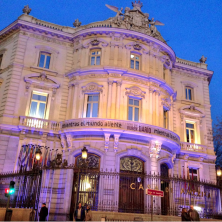 Madrid: la Casa de América tiñe de azul su fachada por el centenario de la muerte de Rubén Darío