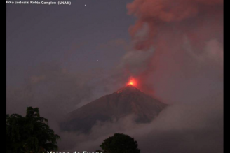 Erupción, ceniza y retumbos en el Volcán de Fuego, Guatemala