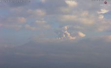 Reportan exhalación y caída de ceniza del volcán Colima, México