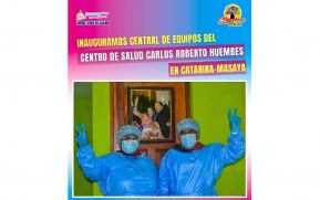 Hoy Lunes inauguramos la Central de Equipos del Centro de Salud Carlos Roberto Huembes en Catarina, Masaya, que nos permitirá atender en mejores condiciones a 8,619 Personas de tres Comunidades de ese Municipio (Inversión 1.7 millones de córdobas).