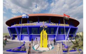 La Alcaldía de La Libertad presenta diseño de lo que será el Estadio Municipal de Béisbol Los 3 Amigos: Erasmo Rivas, Bismarck Serrano y Carlos Barberena.