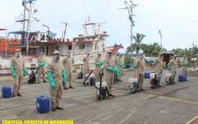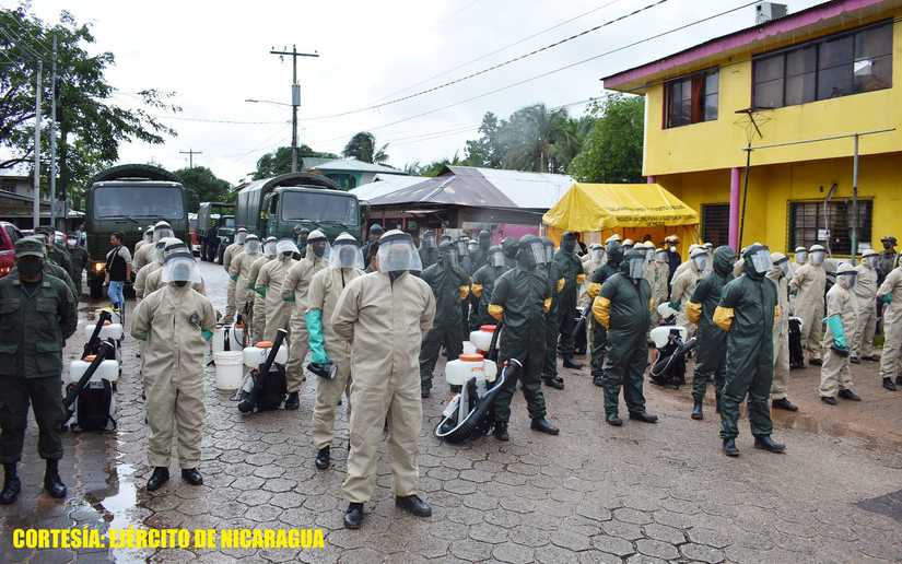 En el marco de las tareas de protección a la población y en cumplimiento al Plan de Empleo de Fuerzas y Medios del Ejército de Nicaragua para el combate ante la COVID-19, efectivos militares de la Unidad Humanitaria y de Rescate.