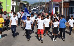 En saludo al 39 Aniversario de la Cruzada Nacional de Alfabetización (CNA), y fundación de la Juventud Sandinista, estudiantes de los tecnológicos nacionales ubicados en el departamento de Granada y centros escolares de primaria y secundaria.