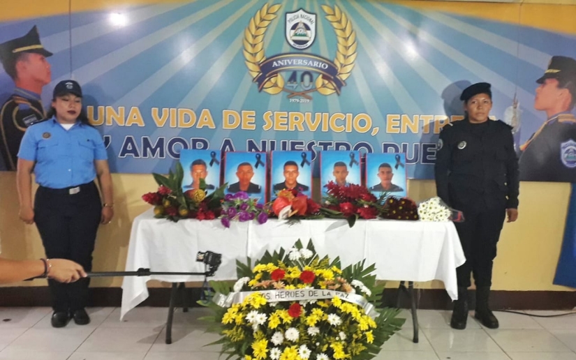 La tarde de este lunes 8 de julio, la Jefatura departamental de la Policía Nacional en Masaya rindió homenaje a Hilario de Jesús Ortiz Zavala, Gabriel de Jesús Vado Ruiz , Kelvin Javier Rivera Lainez y José Abraham Martínez