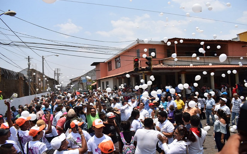 La militancia sandinista de León soltó globos blancos al cielo en representación de la paz, de la hermandad y unidad entre los nicaragüenses, un momento que se aprovechó también para saludarse unos a otros como familia.