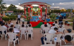 Autoridades municipales de la alcaldía de San Marcos, Carazo, inauguraron el altar en honor a la Virgen María y el ambiente navideño en el parque Central de la ciudad.