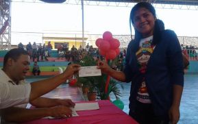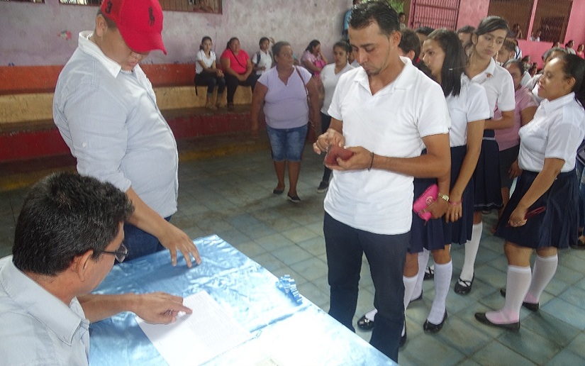 Estudiantes de San Miguelito, en Río San Juan, recibieron este martes el Bono Complementario de Bachillerato, como reconocimiento del Gobierno Sandinista por haber culminado con éxito sus estudios de secundaria.