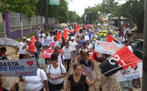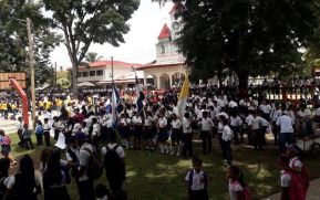 Estudiantes de los diferentes colegios en el departamento de Rivas desfilaron por las principales calles en celebración a su Día, acompañaron la movilización con carteles en los que pedían paz.
