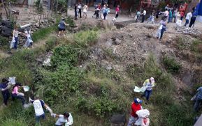 La juventud de Matagalpa se desbordó sobre la calle principal de la ciudad para formar un colorido rio humano en celebración de la extinción del fuego que amenazaba la Reserva de Biosfera Indio Maíz.