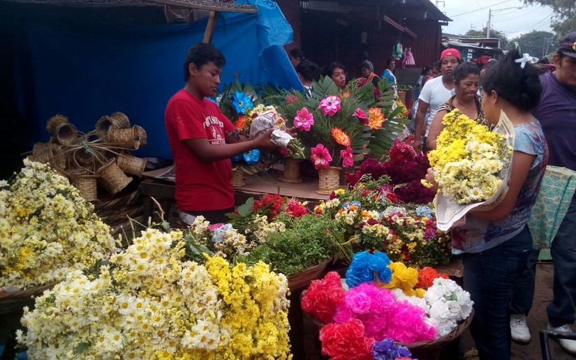 Patricia Larios llegó al Mercado de Masaya “Ernesto Fernández” desde la comarca El Túnel a comprar las flores de rosa poma para llevarlas a su difunta suegra.