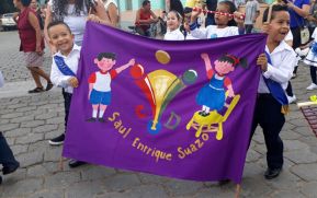 En amor, en paz y llenos de alegría, miles de niñas y niños de Educación Inicial (preescolar), engalanaron las calles de Bluefields con sus libros, trajes e impecables uniformes, muchos de ellos y ellas, mostrando orgullosamente los Símbolos Patrios,