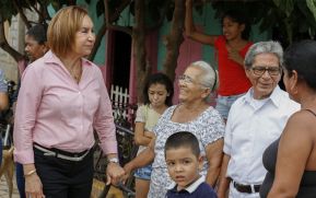 Familias leonesas de los repartos Ermita de Dolores, San Felipe y Zaragoza estrecharon las manos del doctor Roger Guardián Vigil candidato a alcalde y de la Licenciada Guissela Lacayo candidata a Vice Alcaldesa, por la Alianza Unida Nicaragua Triunfa.