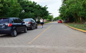 Esos mismos pies de los habitantes del Reparto San Ramón, que caminaron en el polvo y el lodo por muchos años, ahora andan sobre una calle revestida de adoquines.