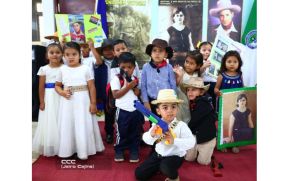Enseñando el legado de soberanía, autodeterminación y valores de dignidad, respeto e identidad del General Augusto C. Sandino, niños y niñas de educación inicial del Colegio Blanca Stella Aráuz.