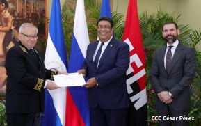 La Vicepresidenta Compañera Rosario Murillo, saludó y le dio la bienvenida al compañero Mikhail Ledenev.