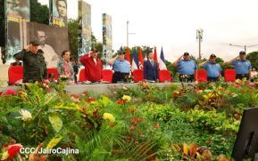 Los Copresidentes de Nicaragua, comandante Daniel Ortega Saavedra y compañera Rosario Murillo, encabezan el acto central de conmemoración del 46 aniversario de fundación del Ministerio del Interio, MINT.