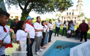 En el Mausoleo de los Héroes ubicado contiguo a Plaza de la Revolución, la Juventud Sandinista se hizo presente para rendir homenaje al Comandante Carlos Fonseca Amador, "Tayacán vencedor de la muerte".