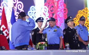 El Presidente de la República, Comandante Daniel Ortega Saavedra y la Vicepresidenta Compañera Rosario Murillo, presiden este lunes 14 de octubre, el acto central de los 45 años de fundación de la Policía Nacional y el Ministerio del Interior.