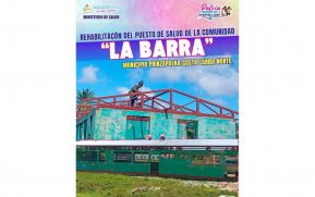 Actualmente, se realizan obras de Rehabilitación y Equipamiento del Puesto de Salud de la Comunidad “La Barra”, Municipio de Prinzapolka-Costa Caribe Norte; lo que nos permitirá atender en mejores condiciones a 1,700 protagonistas quienes pertenecen.