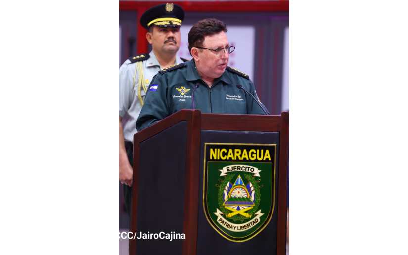 En la ceremonia por el 45 aniversario de la Fuerza Aérea, el Comandante en Jefe del Ejército de Nicaragua, General de Ejército Julio César Avilés Castillo elogió el compromiso y sacrificio de los miembros actuales y retirados de la institución.