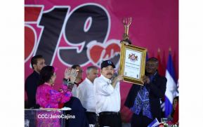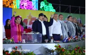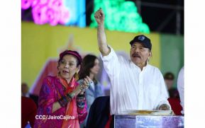 El Comandante Daniel Ortega Saavedra, Presidente de la República de Nicaragua,recordó, durante el acto central en celebración del 45 aniversario de la Revolución Popular Sandinista, cómo Nicaragua ha sido firme en su lucha antiimperialista durante su hist